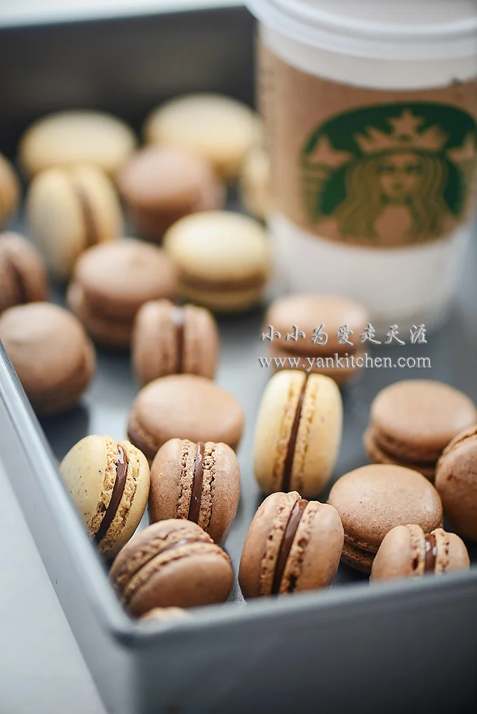 可可马卡龙,算是我大爱的一款,中间一定要配上巧克力ganache的夹馅。一口下去,表壳微脆,中间绵软甜蜜,夹着巧克力特有的细腻和可可香味,真是好吃哦!O(∩_∩)O~