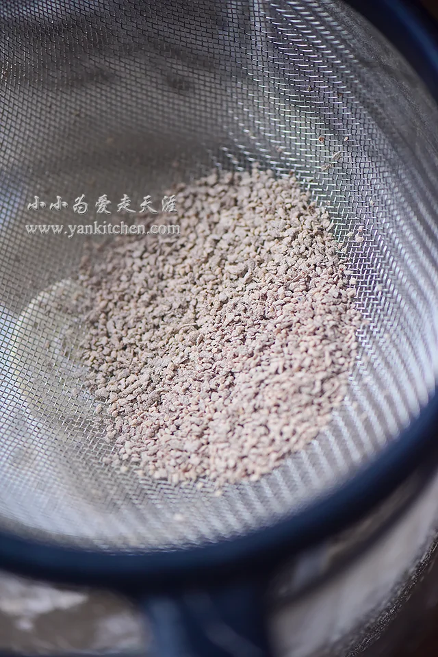 去掉那些筛出来的比较粗的杏仁粉颗粒。