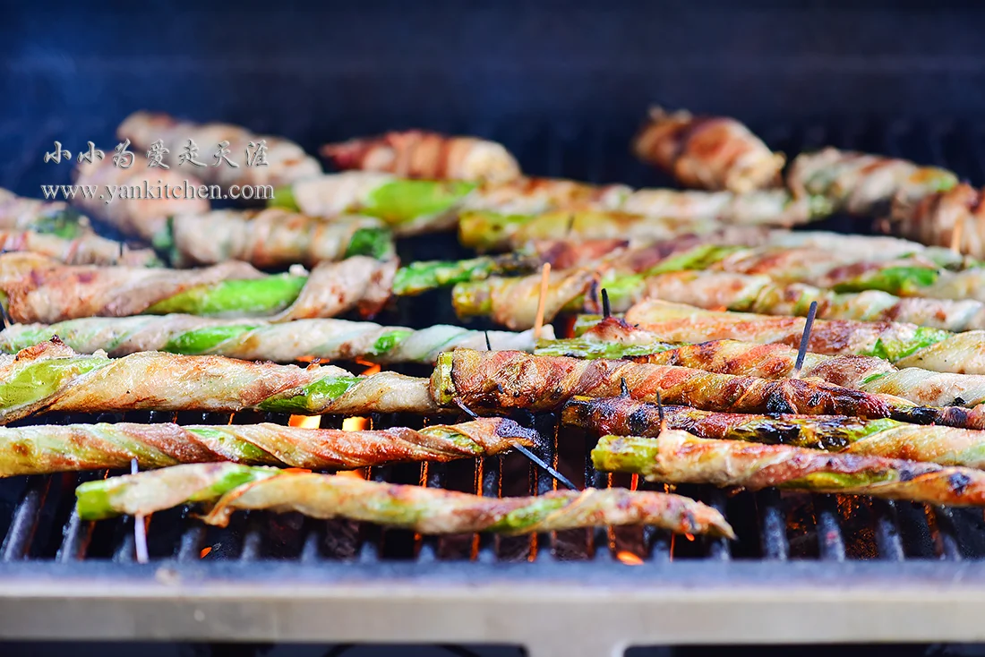 相比起用烤箱烤出来的芦笋卷,grill出来的更有炭火气,也更焦香