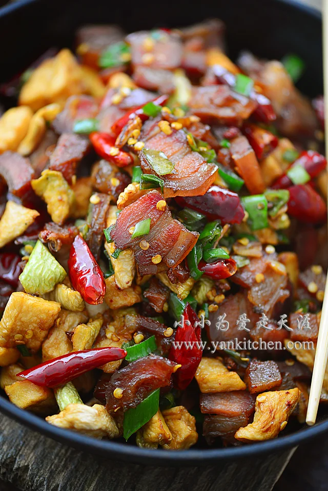 自从跟做了腊肉以后,就一直眼巴巴的等啊等,一直等了三个礼拜,腊肉终于可以吃了。正好又做了萝卜干,就切了一根腊肉用来做了这道菜,绝对是名副其实的饭扫光啊,非常好吃,干香鲜辣还非常有嚼劲。