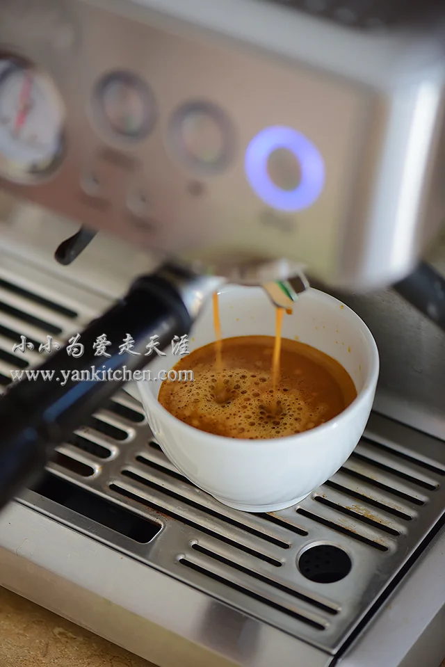 先打咖啡,现磨现压出来的espresso,味道才够正哦!我们家用的是Breville 870XL。