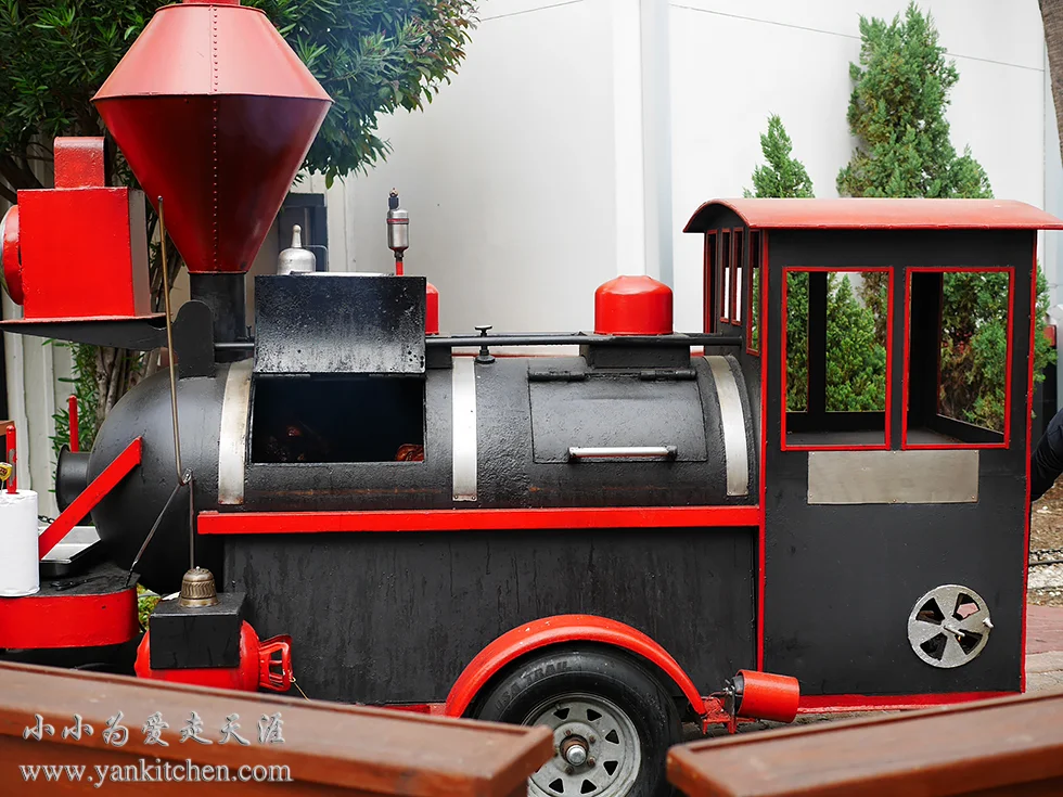 旁边的小吃摊有个小火车状的grill/smoker,正在熏火鸡腿