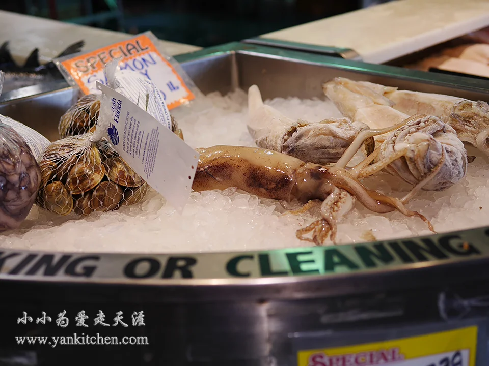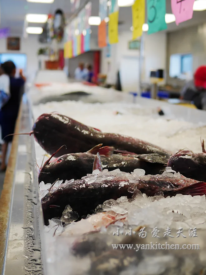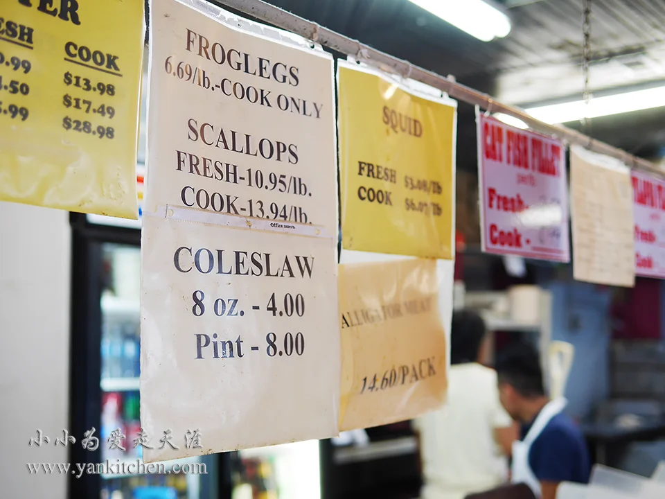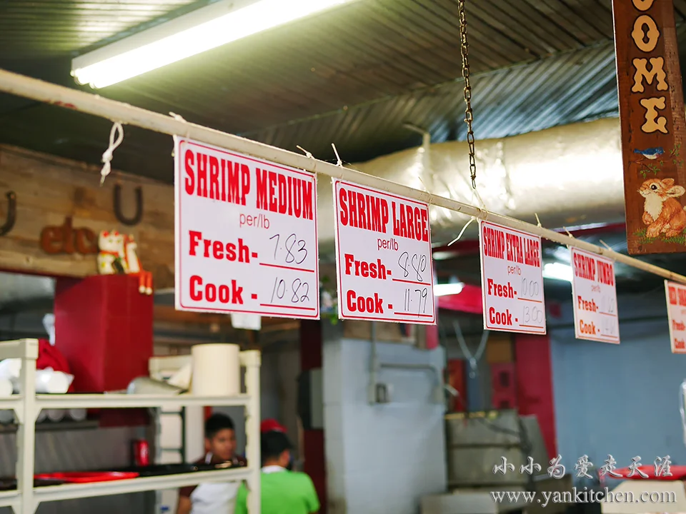 每一种海产品都标了两个价钱,fresh的价钱是直接称好带回家的,cook的价钱是称了以后,直接拿去后厨加工,加调料直接炸好端上桌的,现卖现点现做,很方便直观。