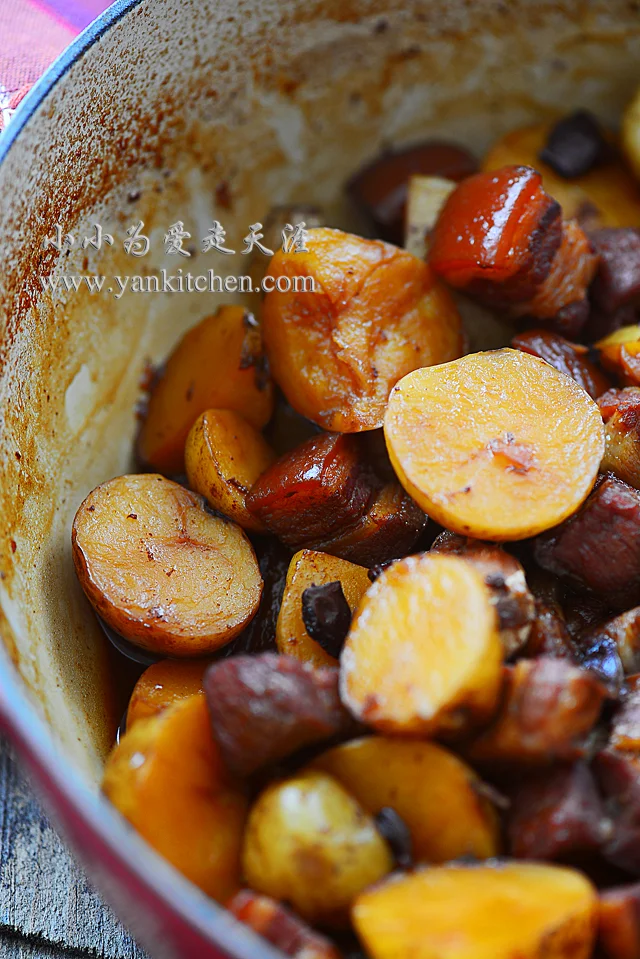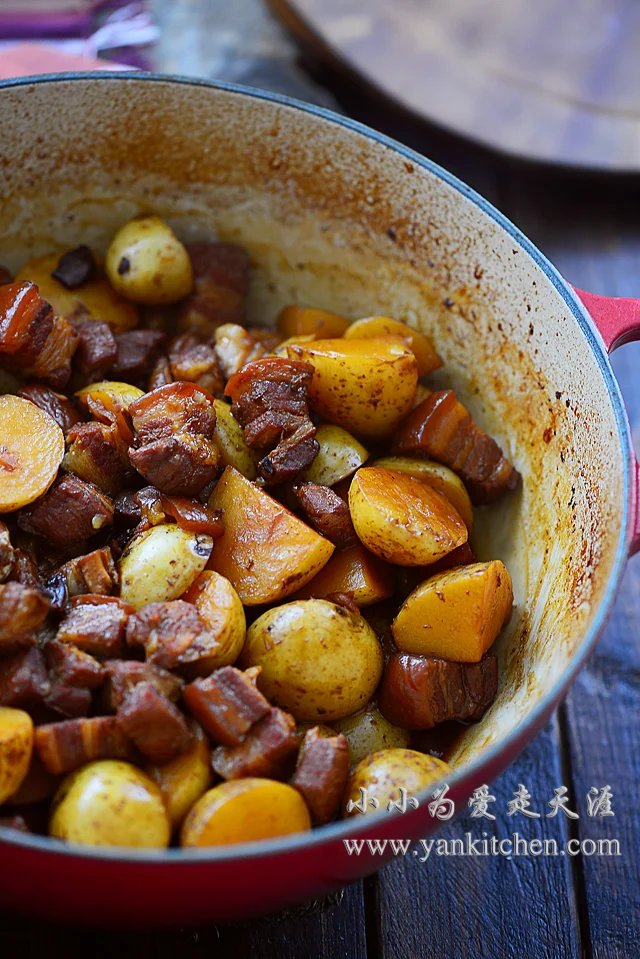 方子跟以前贴过的家常红烧肉是一样的,所以没有再拍过程图,借用了以前贴过的过程图。这次做的只是多了小土豆,酱油的用量要略微多一点点,因为土豆入味些会更好吃。