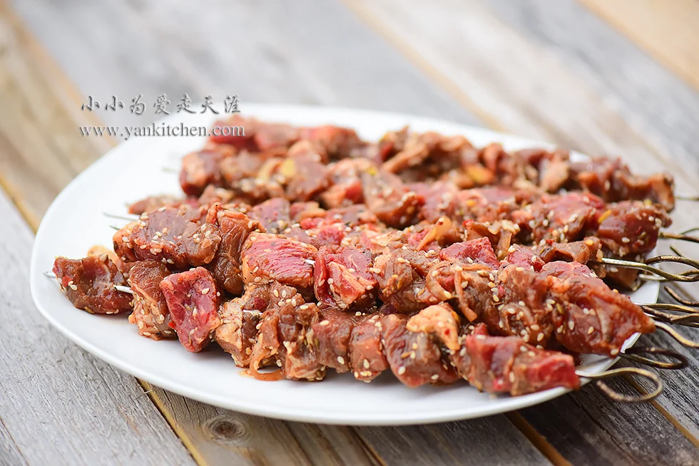 I have done grilled skewed beef for so many times that I can do it right with my eyes closed O(∩_∩)O~ however, I am never getting tired of BBQ, neither is my husband. We grill and BBQ at any chances when the weather allows.